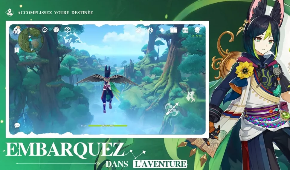 L’histoire de Genshin Impact nous transporte dans le monde magique de Teyvat, un lieu gouverné par sept dieux élémentaires, où chaque région reflète une culture et une esthétique uniques. Vous incarnez le « Voyageur », un personnage en quête de son frère ou de sa sœur jumelle disparu(e), tout en se mêlant aux affaires des dieux et des nations de ce monde. Au fil de votre aventure, vous découvrirez des secrets anciens, des trésors cachés et des récits poignants qui donnent vie à ce monde vibrant.